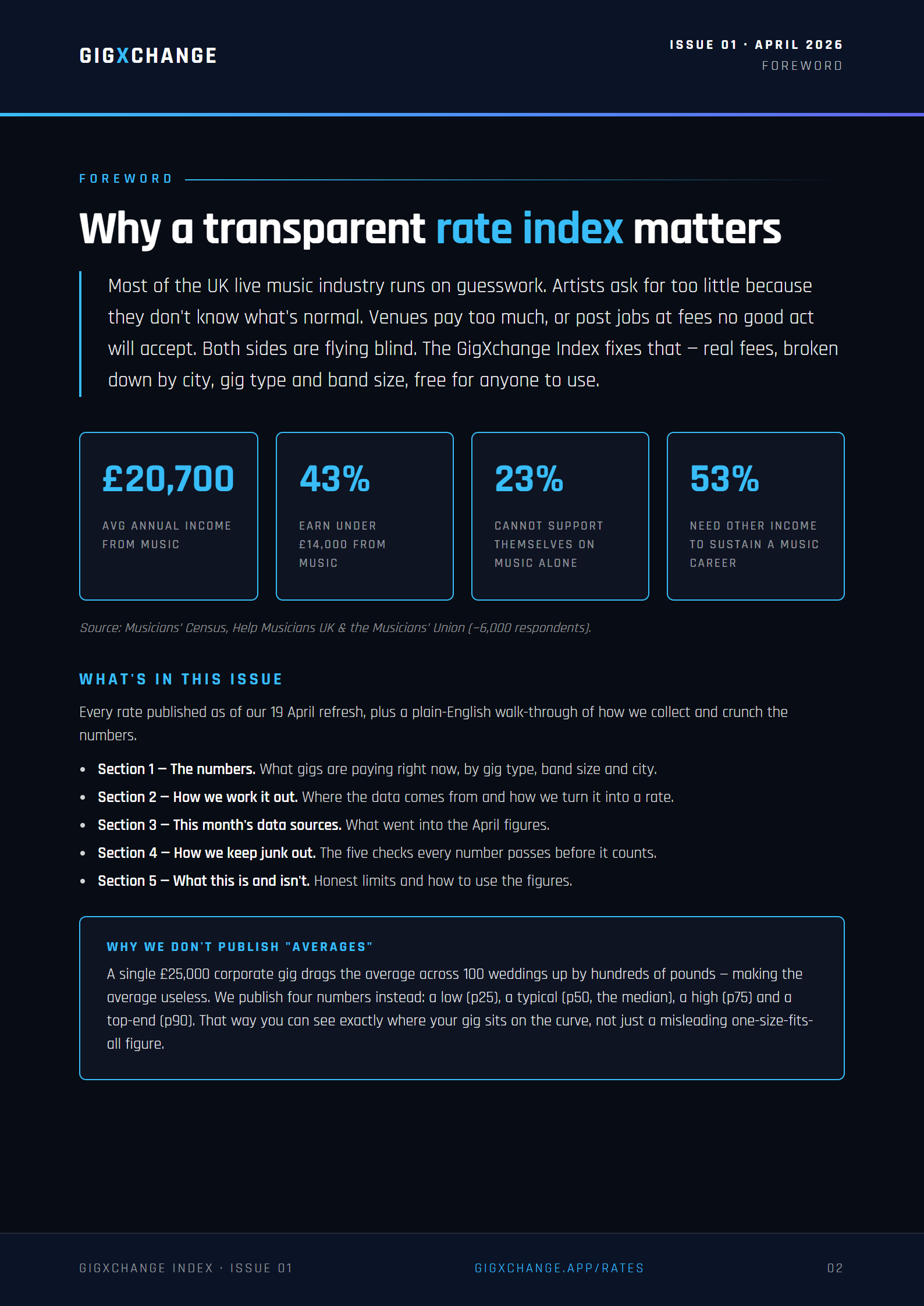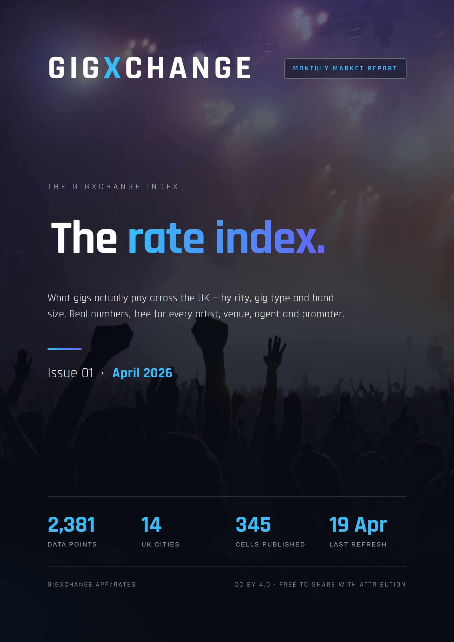 What gigs actually pay across the UK this month — by city, gig type and band size.